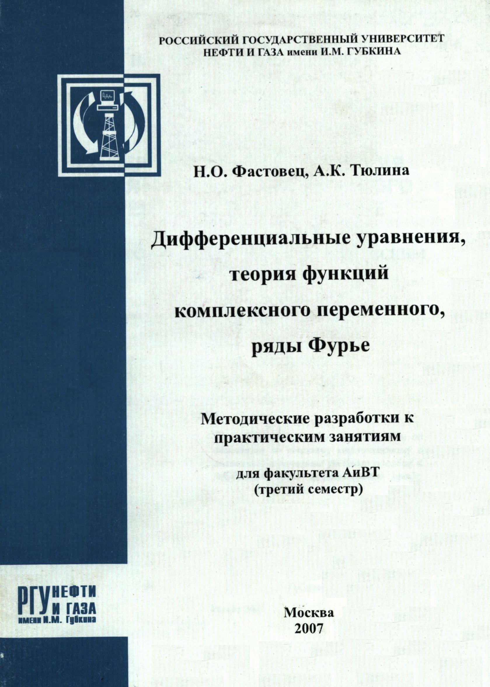 Дифференциальные уравнения, теория функций комплексного переменного, ряды Фурье. Методические разработки к практическим занятиям для фак-та АиВТ (третий семестр)