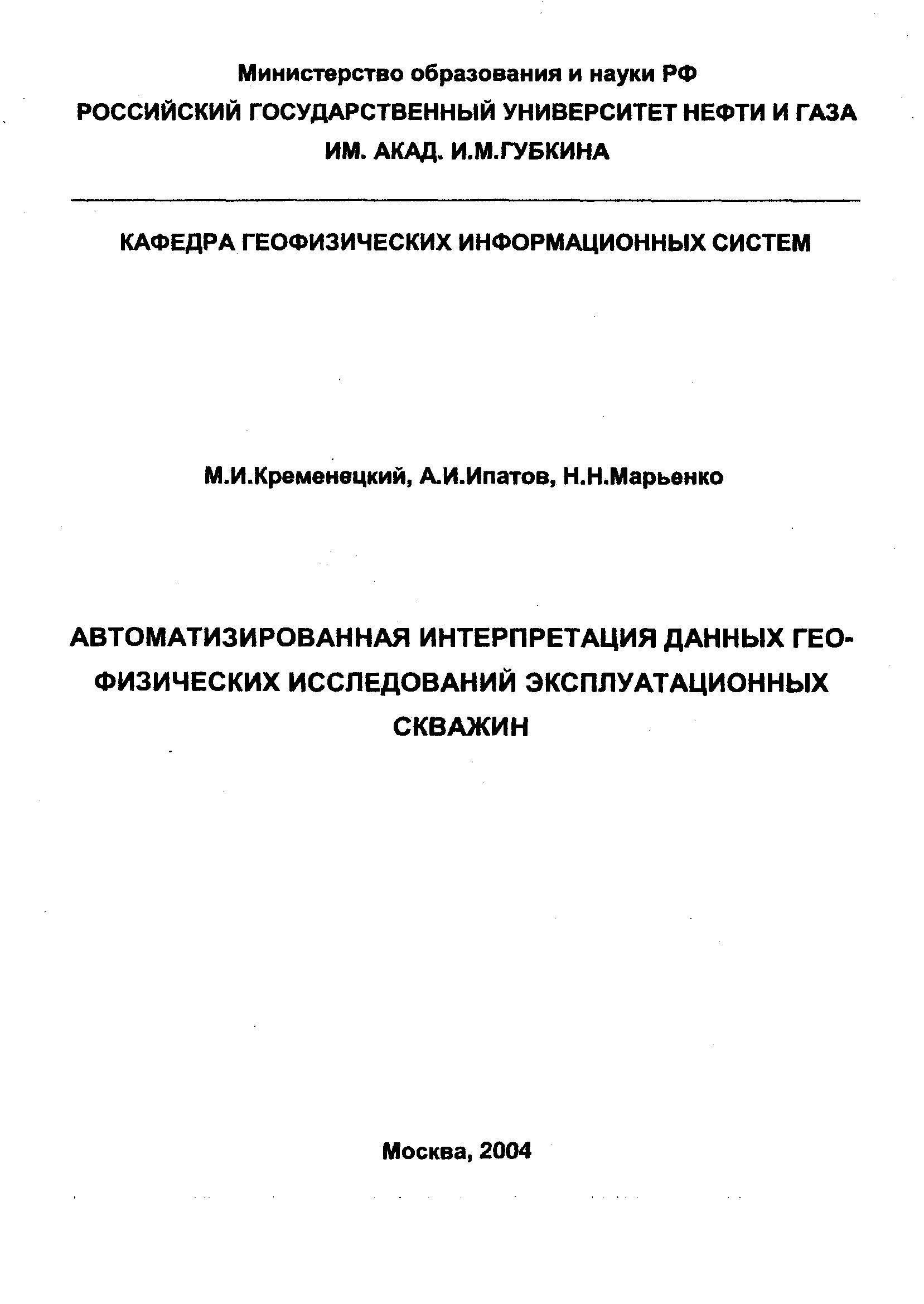 "Автоматизированная интерпретация данных геофизических исследований эксплуатационных скважин" (PDF - 3.82 Мб)