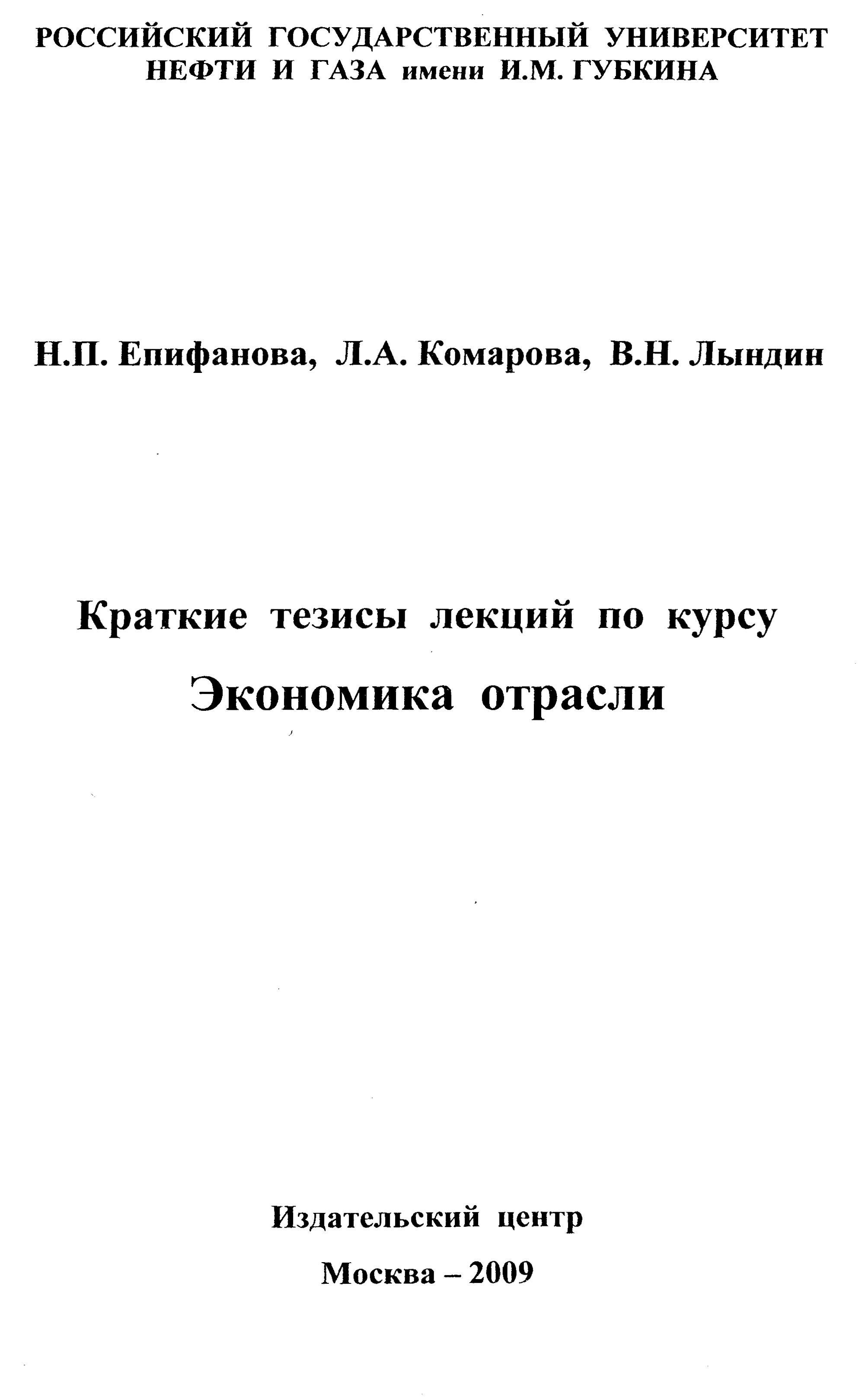 "Краткие тезисы лекций по курсу "Экономика отрасли"" (PDF - 0.44 Мб)