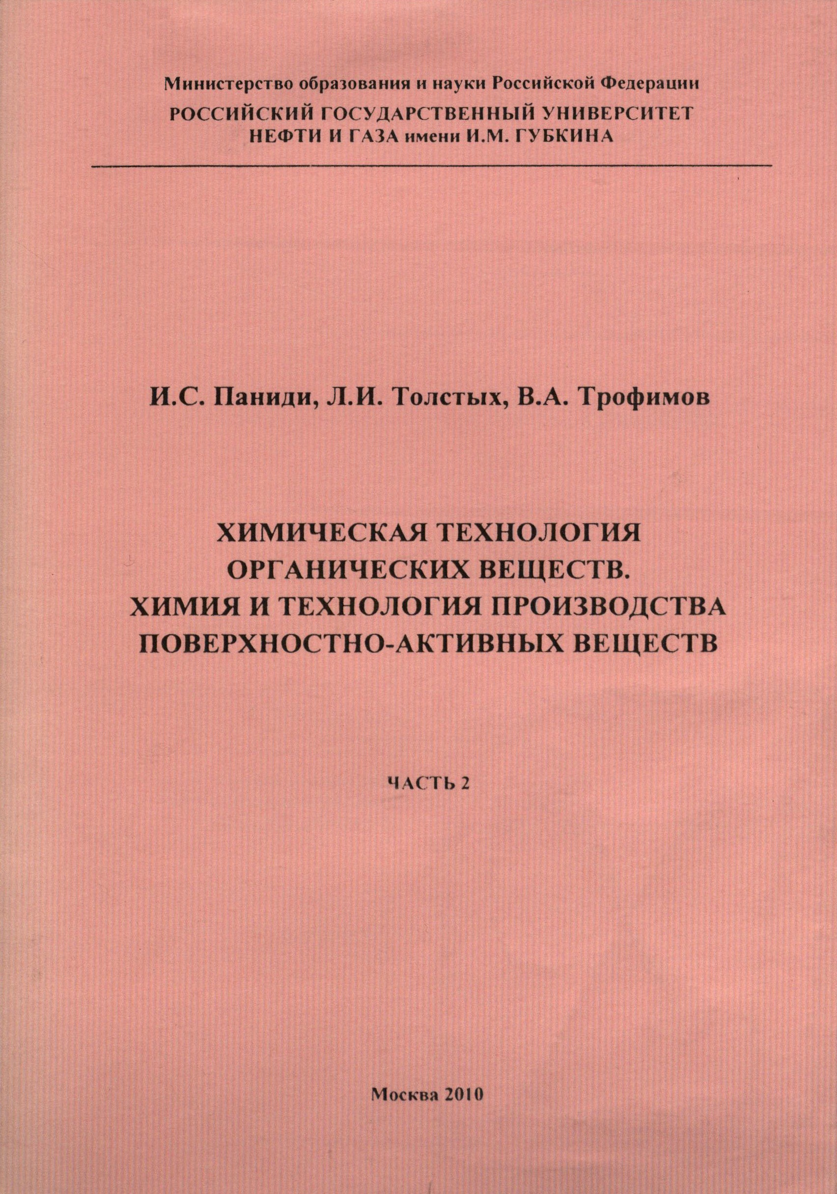 ХИМИЧЕСКАЯ ТЕХНОЛОГИЯ ОРГАНИЧЕСКИХ ВЕЩЕСТВ