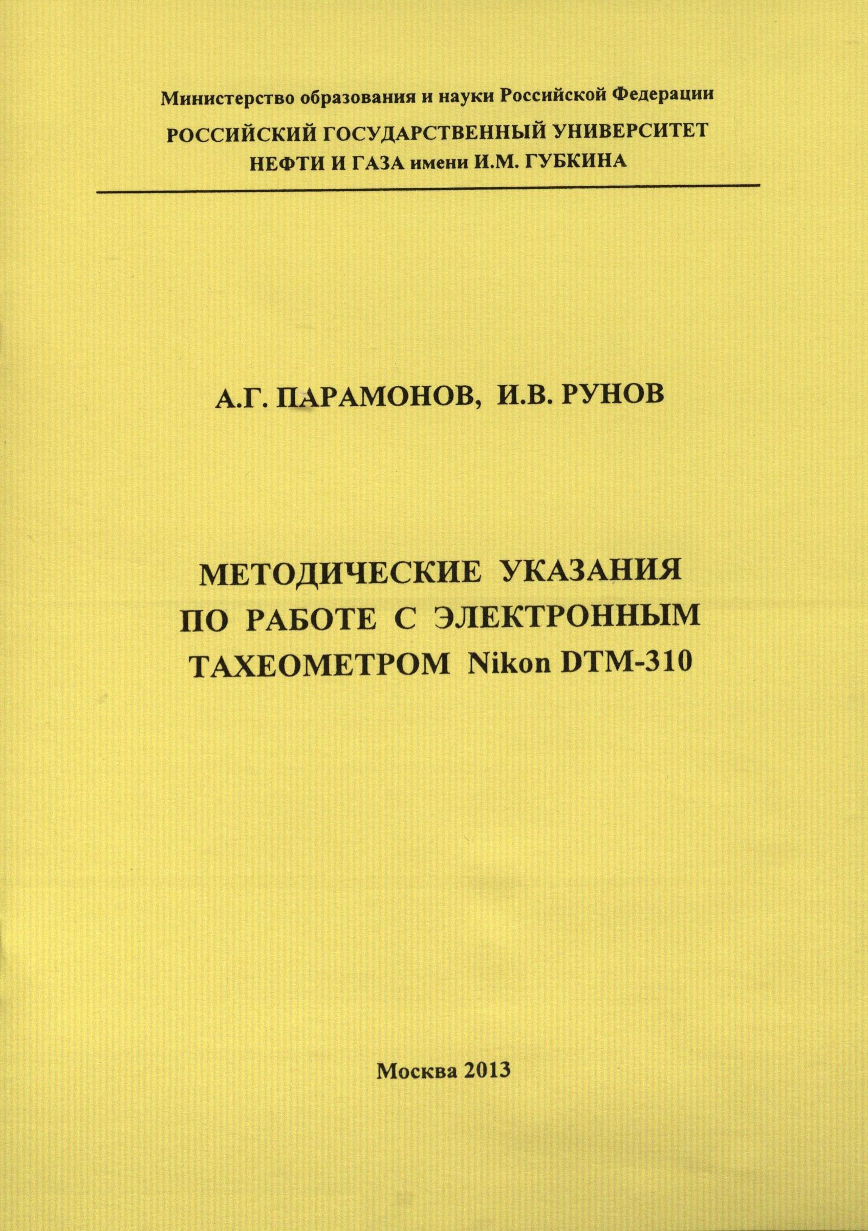 "Методические указания по работе с электронным тахеометром Nikon DTM-310" (PDF - 0.39 Мб)