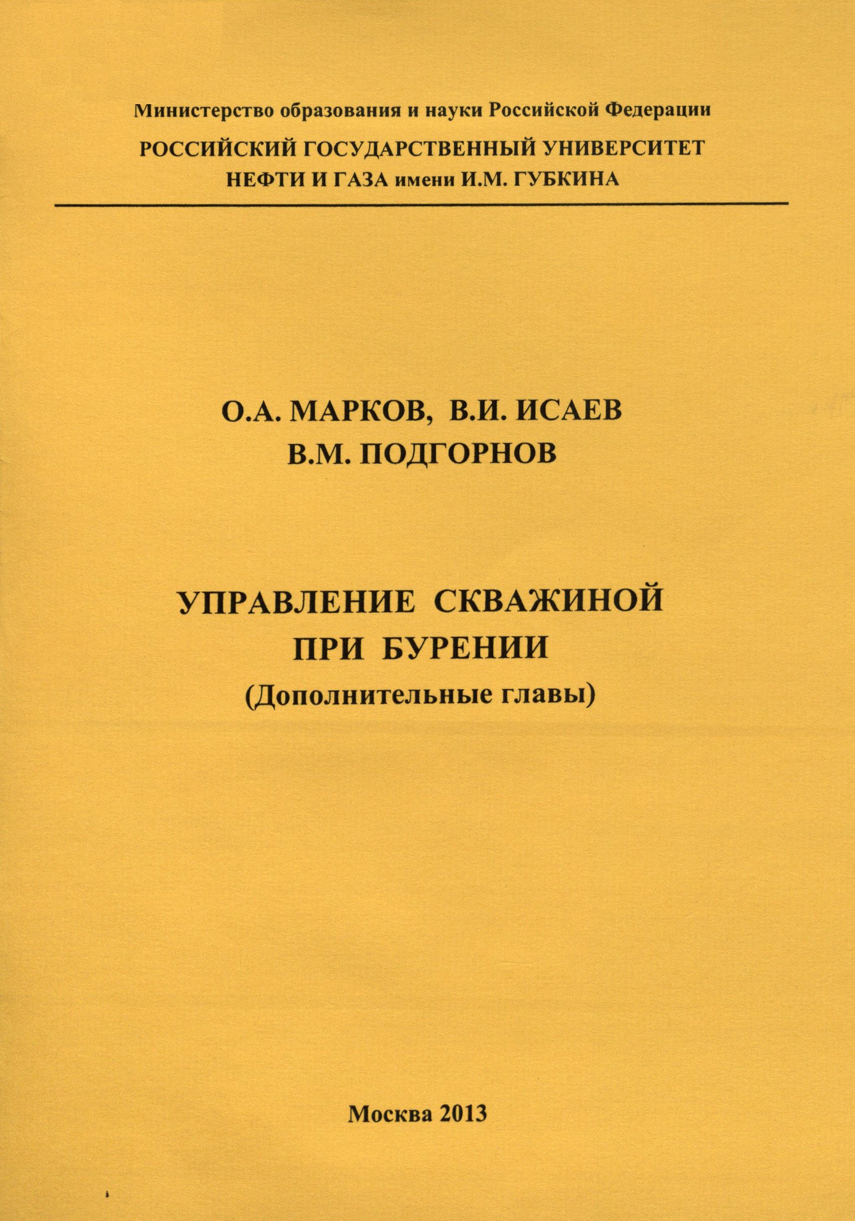 Представлен дополнительный материал по новой программе к учебному пособию (В.И. Исаев, О.А. Марков. Управление скважиной. Предупреждение и ликвидация газонефтеводопроявлений: учеб. пособие, 3-е изд., испр. и доп.- М.: ИЦ РГУ нефти и газа, 2013.- 151 с.), который изложен в соответствии с программой дисциплин «Технология бурения нефтяных и газовых скважин», «Буровые промывочные жидкости», «Осложнения и аварии при бурении нефтяных и газовых скважин», «Заканчивание скважин».