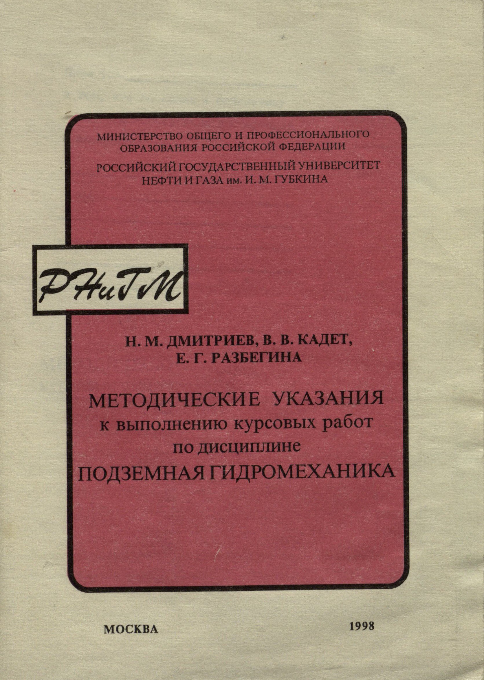 Методические указания к выполнению курсовых работ по дисциплине "Подземная гидромеханика"