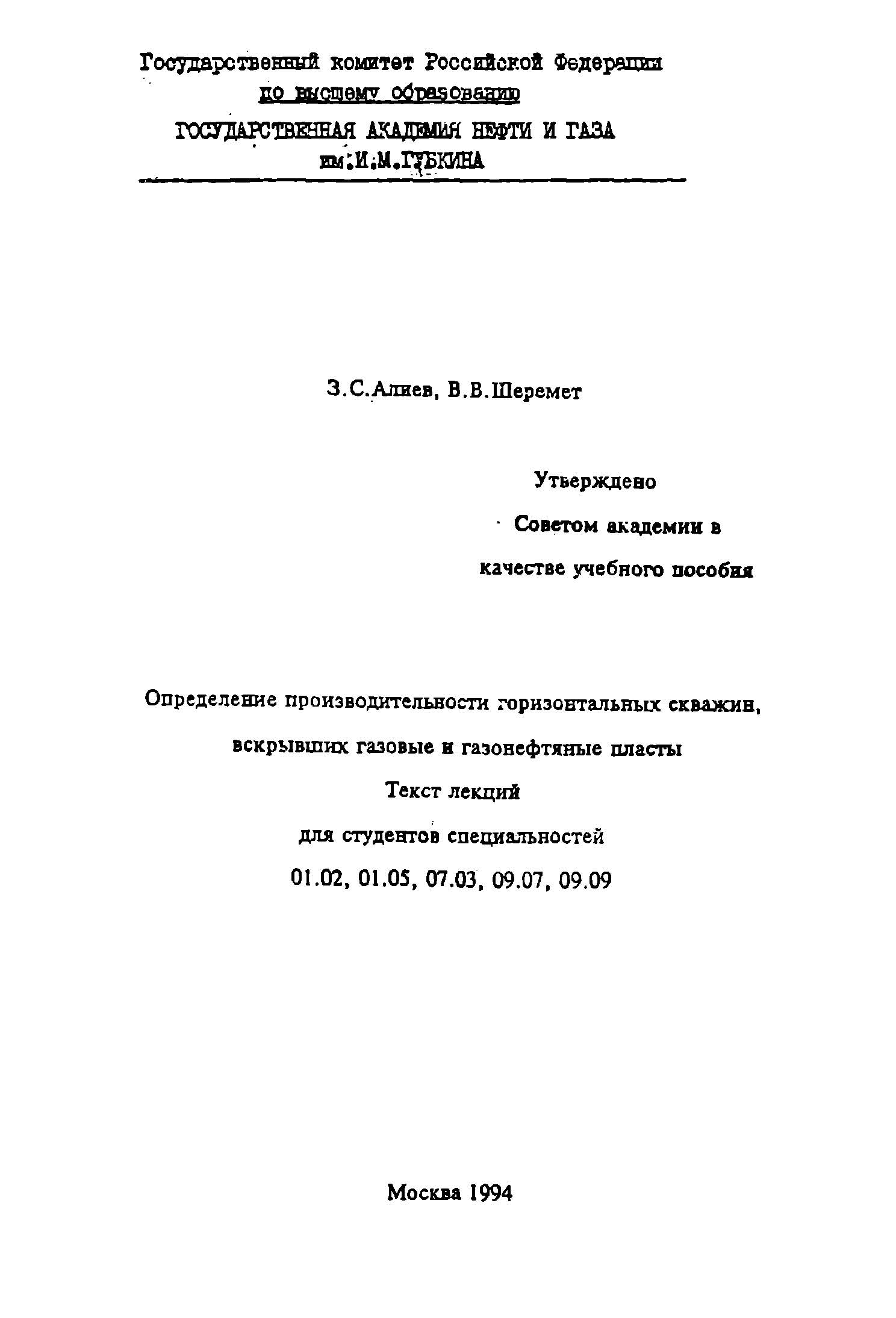 "Алиев З.С. и др. Определение производительности горизонт. скважин" (PDF - 4.09 Мб)