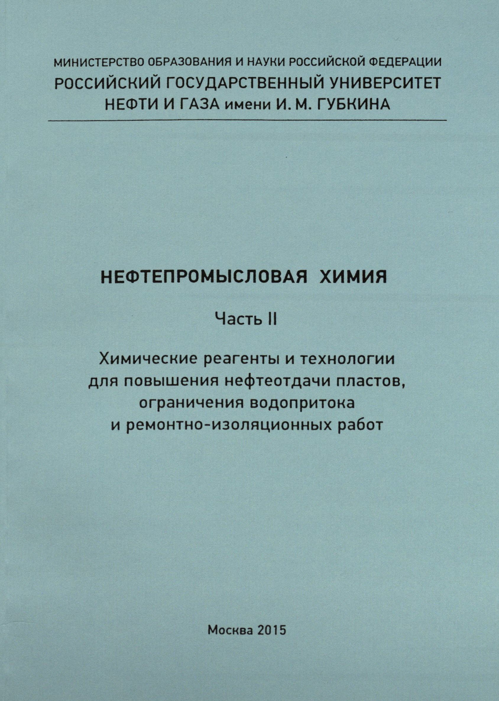 Нефтепромысловая химия. В 4 ч. Ч. 2. Химические реагенты и технологии для повышения нефтеотдачи пластов, ограничения водопотока и ремонтно-изоляционных работ