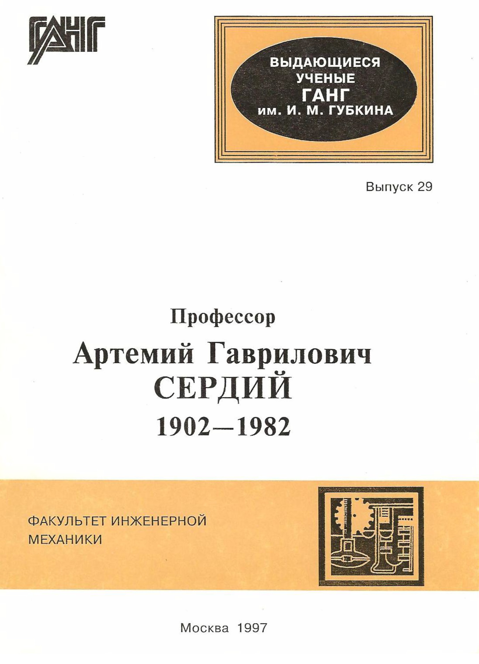 Посвящено жизни и творческой деятельности А.Г. Сердия - ученого в области машин и оборудования нефтяной и газовой промышленности, директора Московского нефтяного института им. И.М. Губкина в 1938-1939 и 1947-1954 гг.