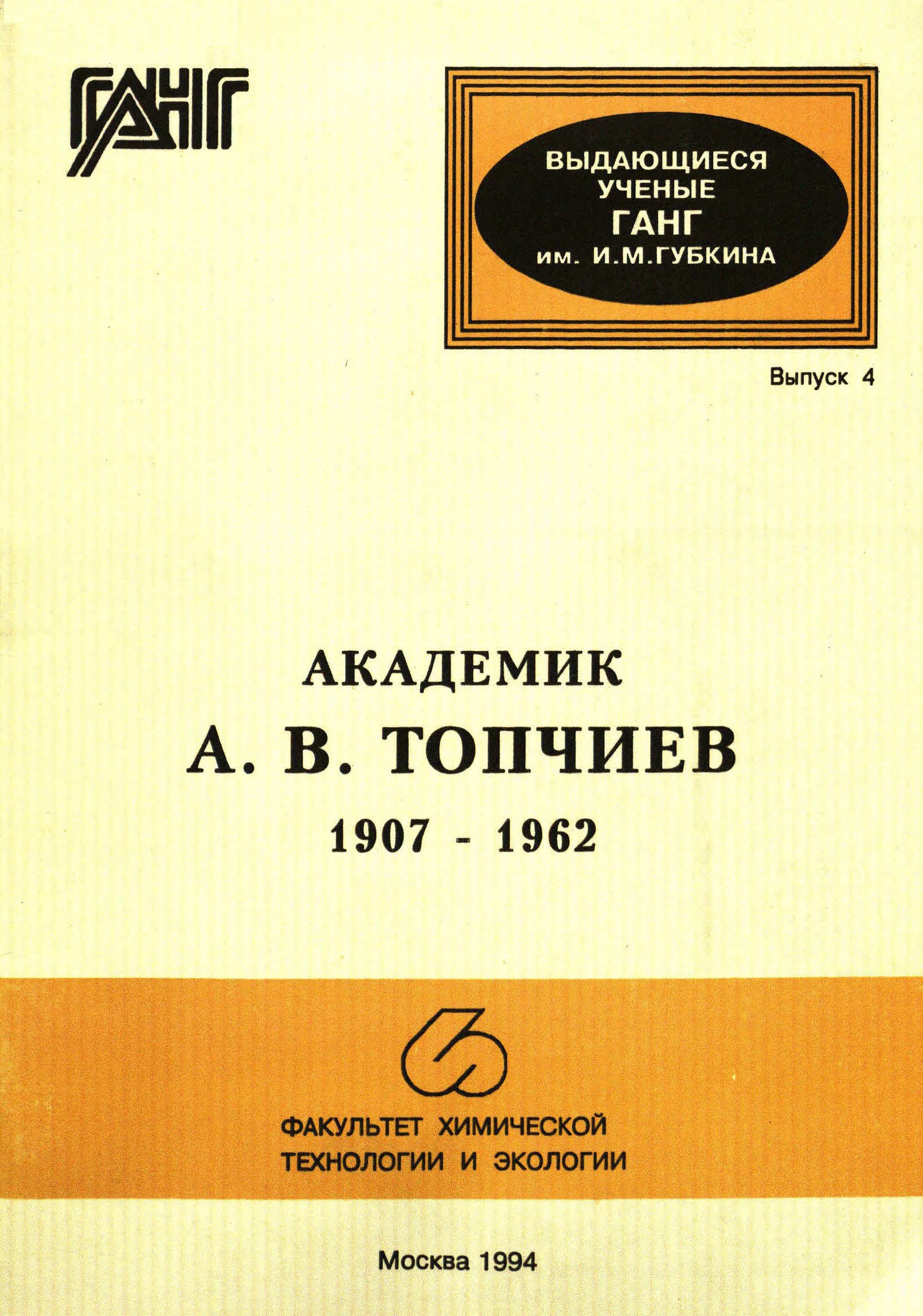 Академик Александр Васильевич Топчиев, выдающийся химик-органик нашей страны, ученый с мировым именем, лауреатГосударственной премии, в течение многих лет руководил кафедрой органической химии и химии нефти.