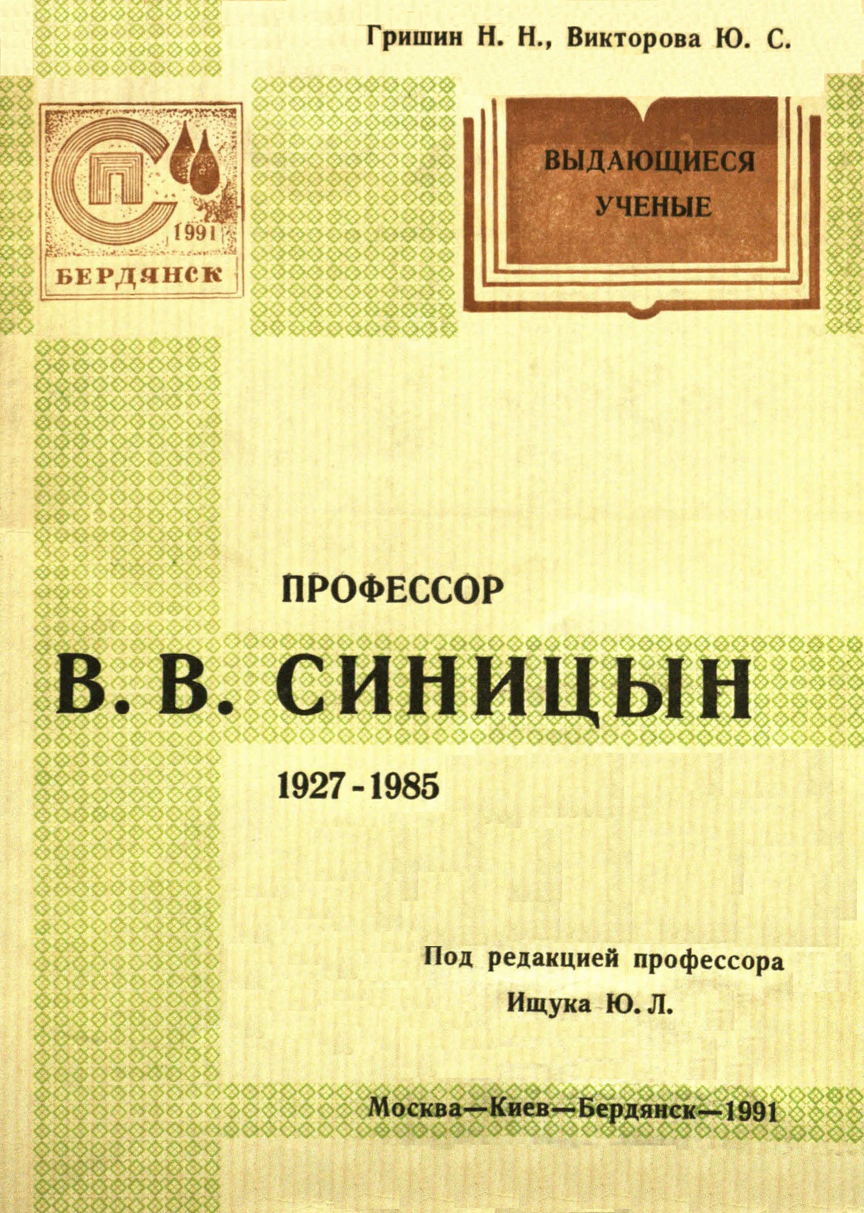 Брошюра содержит краткий очерк жизни и творчества д.т.н., проф. Владимира Владимировича Синицына и библиографический указатель его трудов.
