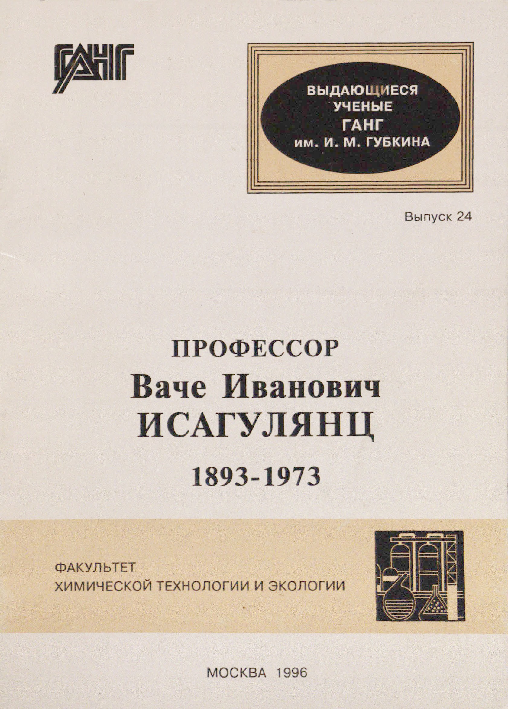 Настоящее издание посвящено жизни и творчеству Ваче Ивановича Исагулянца - педагога и крупнейшего ученого в области химии нефти, нефтехимического синтеза, химмотологии, технологии производства синтетических душистых веществ и лекарственных препаратов.