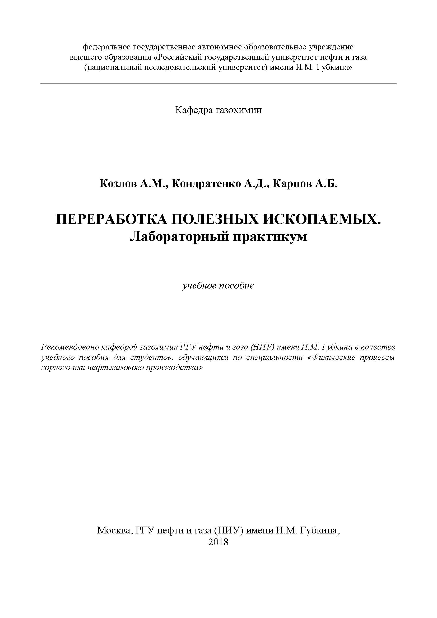В пособии рассмотрен порядок выполнения лабораторных работ по курсу «Переработка полезных ископаемых».