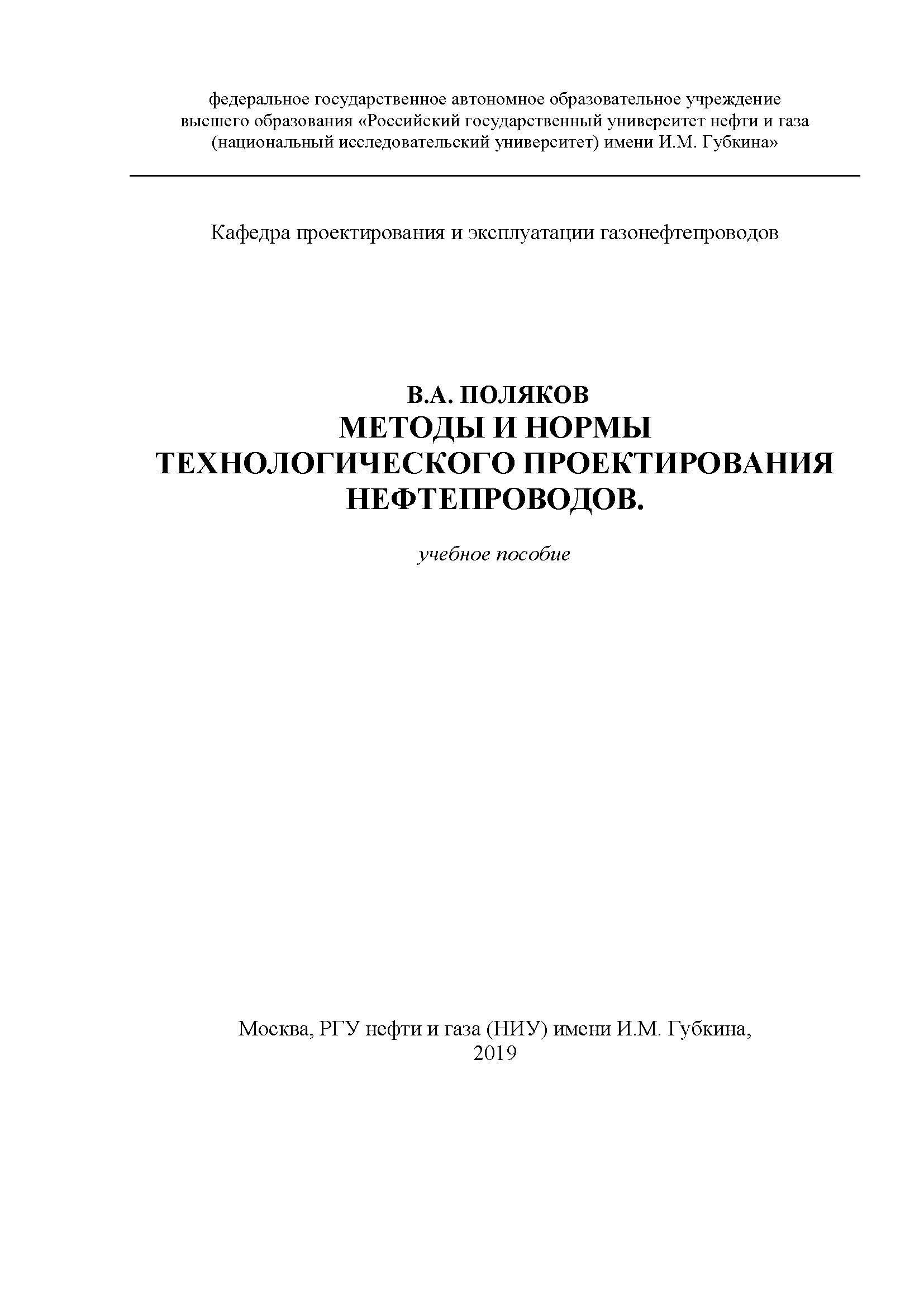"Поляков В.А. Методы и нормы технологического проектирования нефтепроводов" (PDF - 3.37 Мб)