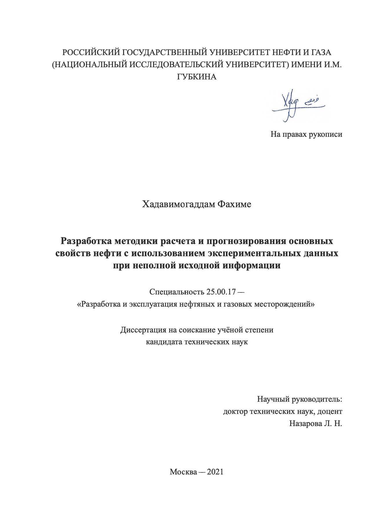 Разработка методики расчета и прогнозирования основных свойств нефти с использованием экспериментальных данных при неполной исходной информации