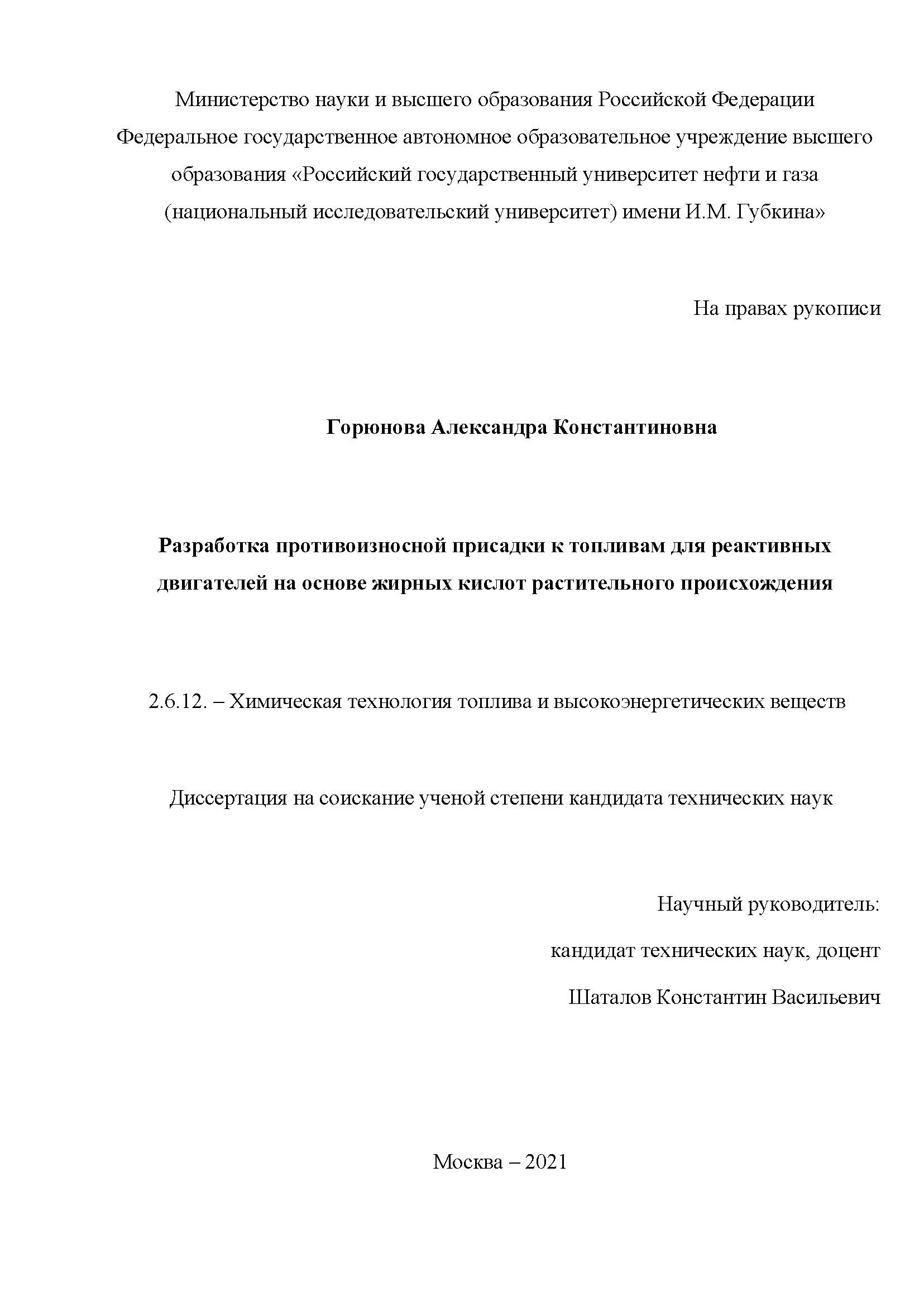 Разработка противоизносной присадки к топливам для реактивных двигателей на основе жирных кислот растительного происхождения