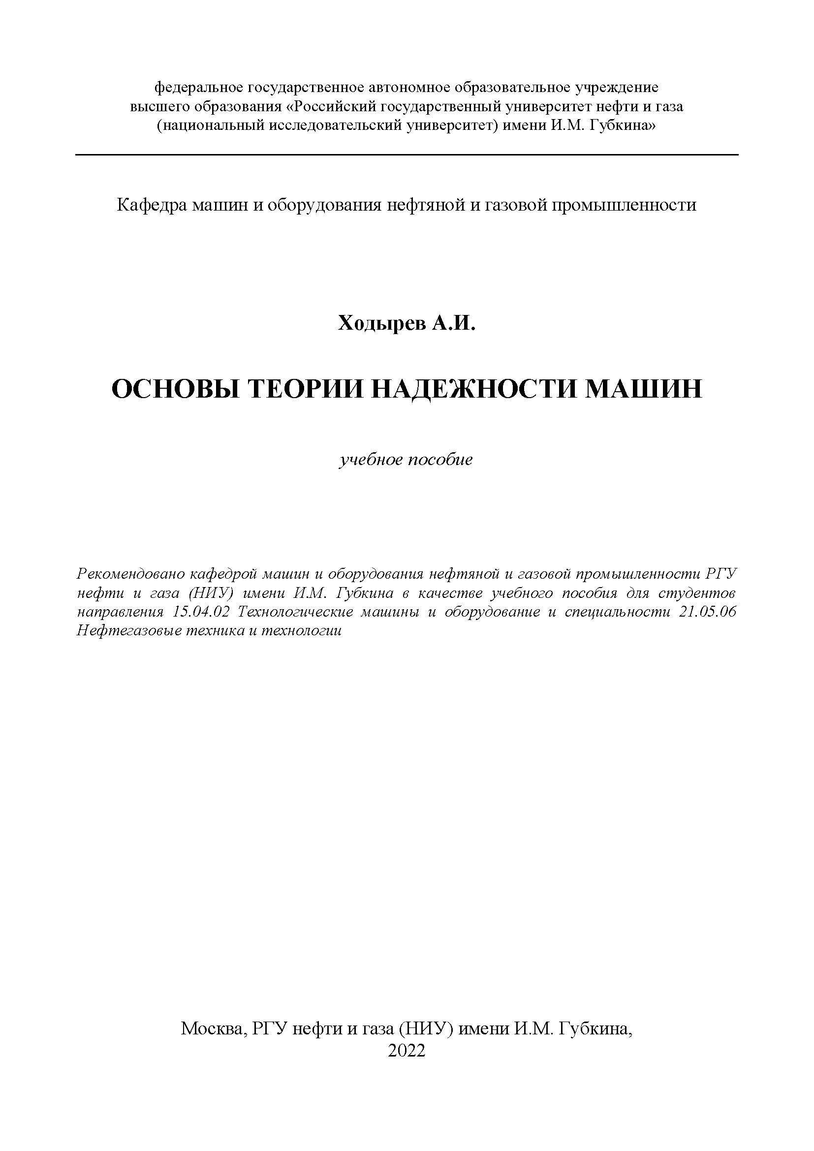 "Ходырев А.И. Основы теории надежности машин" (PDF - 3.11 Мб)